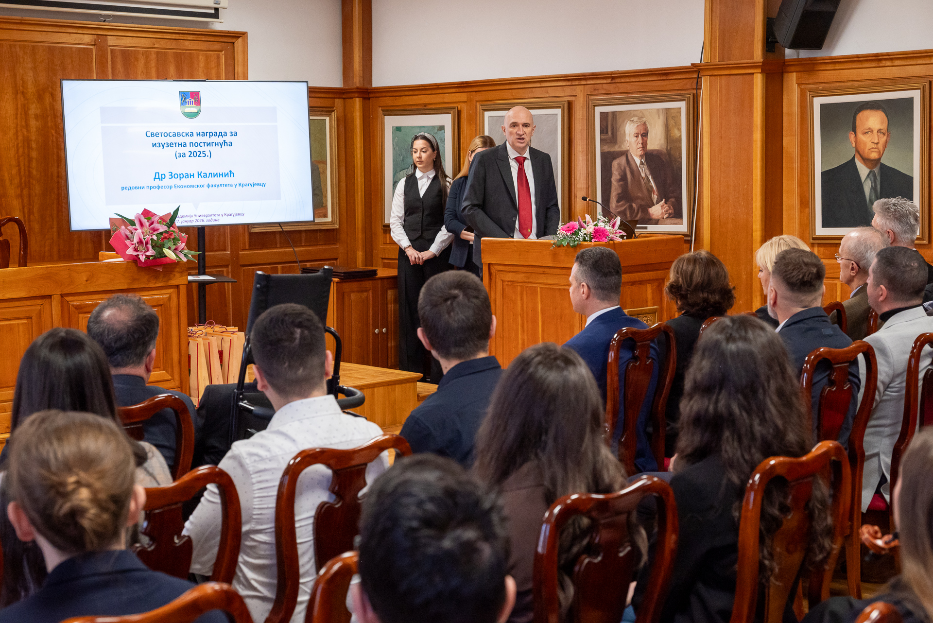 Светосавска награда за изузетна постигнућа за 2025. годину додељена је др Зорану Калинићу, редовном професору Економског факултета Универзитета у Крагујевцу, за изузетан допринос научном и наставном раду, као и укупном развоју академске заједнице.