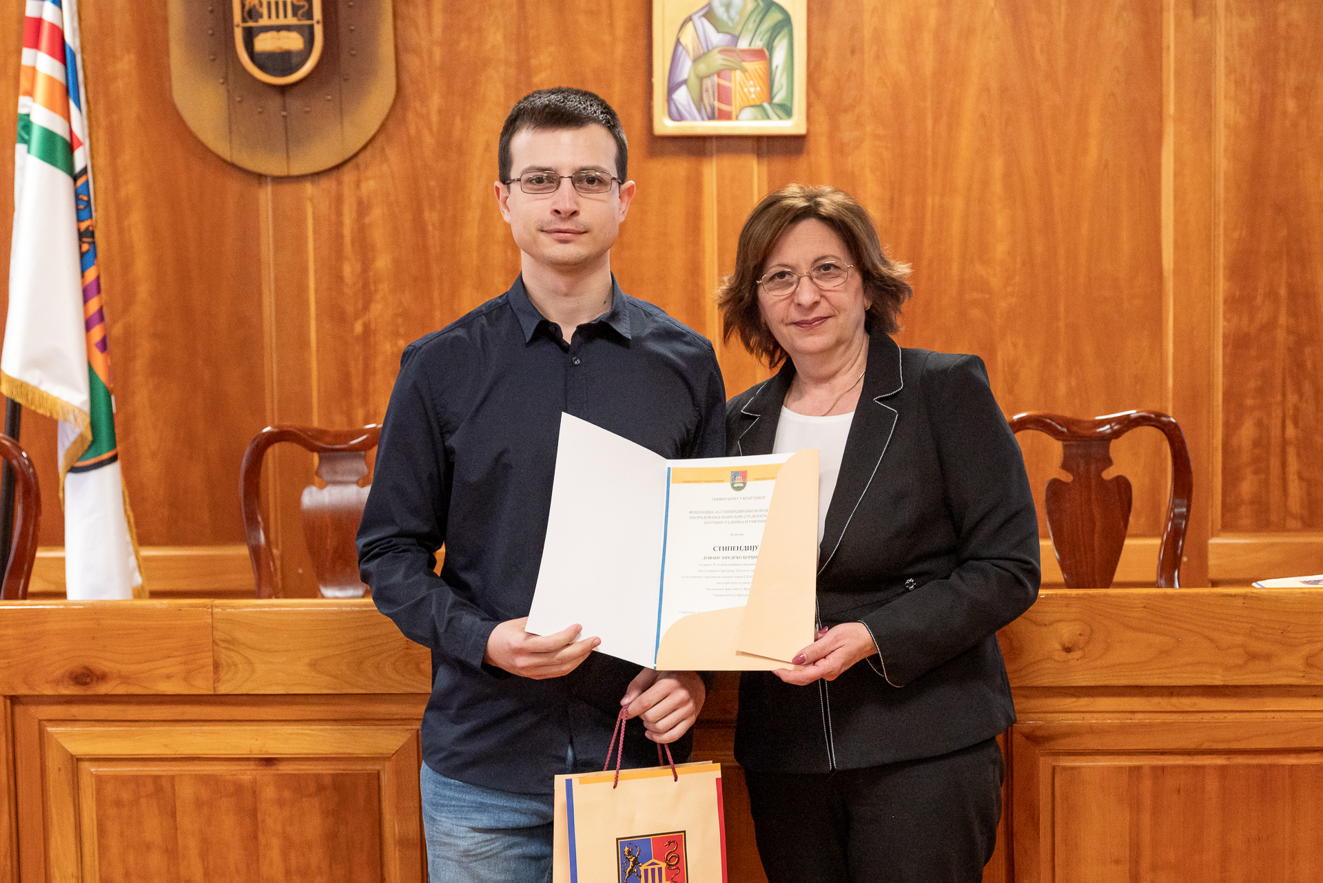Управни одбор Фондације за стипендирање најбољих студената Универзитета у Крагујевцу уручио је стипендије за 2026. годину најуспешнијим студентима са 12 факултета Универзитета. Међу добитницима стипендије је и Душан Ђурђевић, студент четврте године Економског факултета, на студијском програму Пословна информатика, са просечном оценом 10,00.