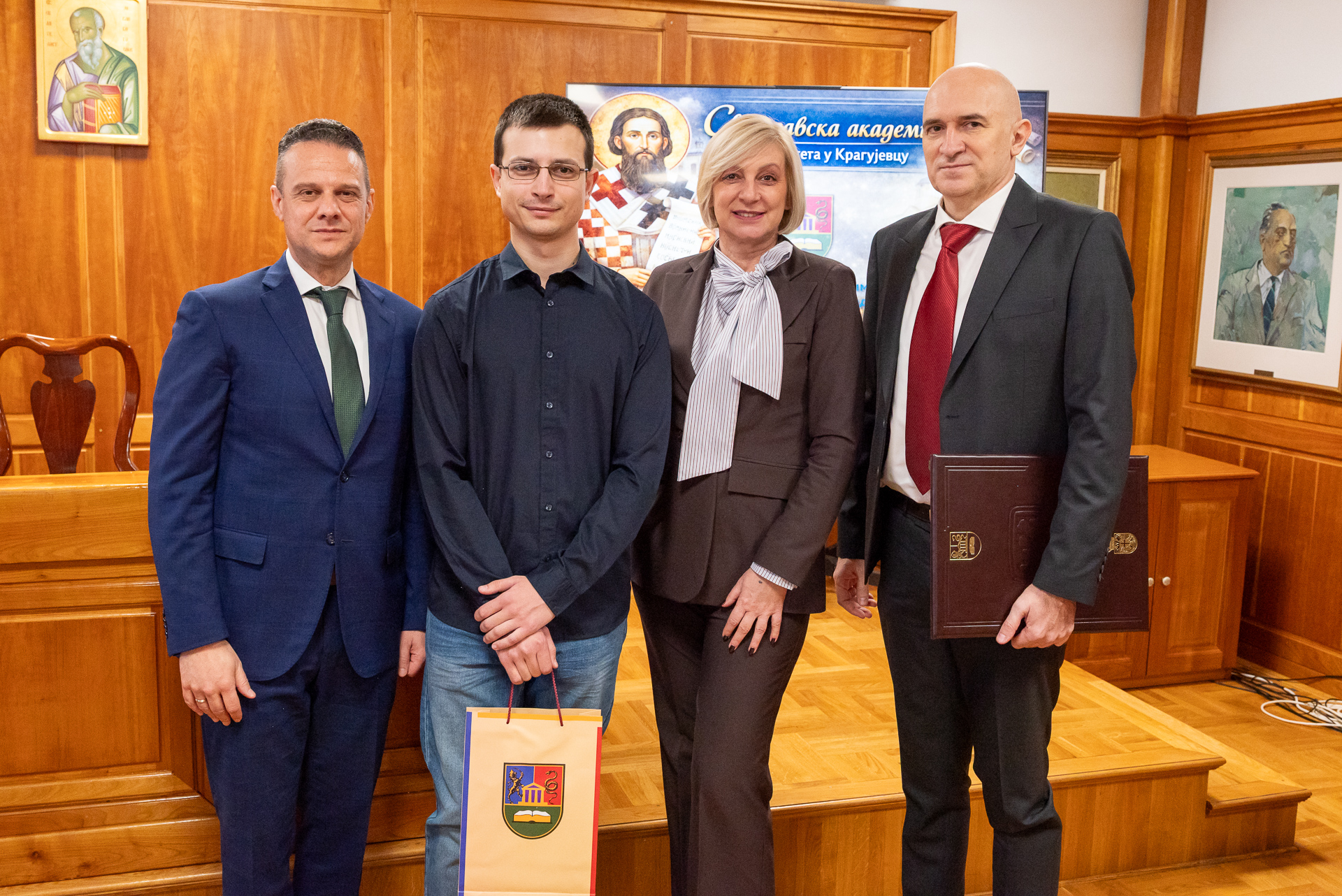 Поводом Савиндана – Дана духовности у Републици Србији, у Универзитетској галерији Универзитета у Крагујевцу је, 27. јануара, одржана Светосавска академија. Свечаност је окупила бројне званице, наставнике, сараднике и студенате. У оквиру централног дела програма додељене су Светосавске награде, и то у две категорије: за изузетна постигнућа и за животно дело.