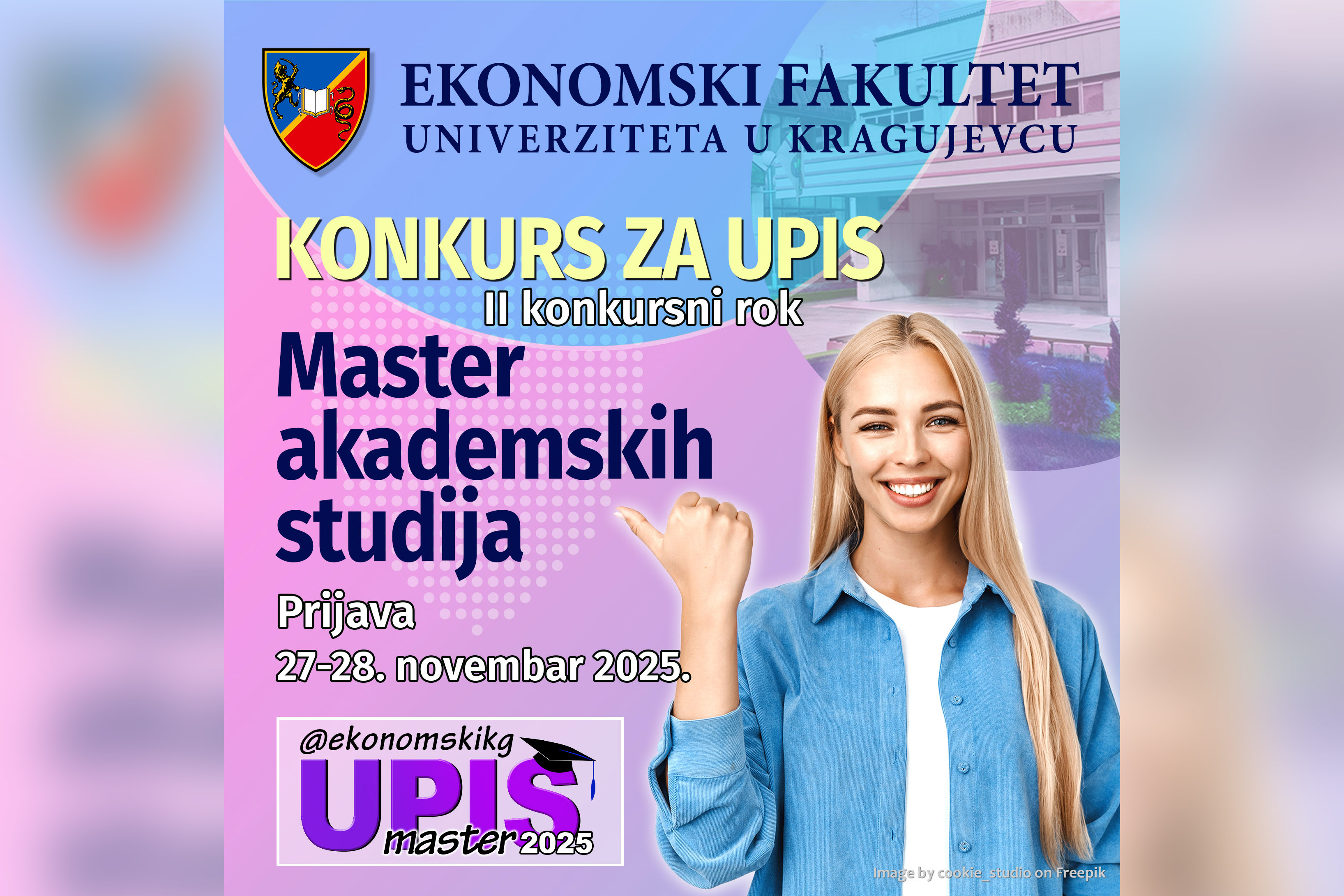 Економски факултет Унивезитета у Крагујевцу расписује II КОНКУРСНИ РОК за упис самофинансирајућих студената на МАСТЕР АКАДЕМСКЕ СТУДИЈЕ у школској 2025/2026. години, на следеће Студијске програме/Модуле: